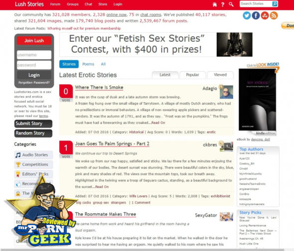 www.lushstories.com твърди, че е „сексуална история и фокусирана върху еротика социална мрежа за възрастни“ и като такава създаването на акаунт се насърчава изцяло. Те също направиха процеса много лесен, като поставиха опцията за присъединяване в горния ляв ъгъл на началната страница. Тук също можете да влезете във вашия акаунт. Наличието на акаунт не е задължително, но ако искате да се насладите на пълноценното изживяване на историите, това определено е пътят. Не губиш нещо, като го вземеш, така че просто го направи. Освен това, че сте член означава, че получавате достъп само до райони на пищни истории, като „трезорът“. Със сигурност искате да знаете, че исканията се пазят зад тази стена, нали? Членството е 100% безплатно. Обичам, че те имат работещ отметка отгоре, който ви показва най-новите публикации във форума. По този начин, ако човек предизвика интереса ви, можете просто да преминете към него с едно щракване.