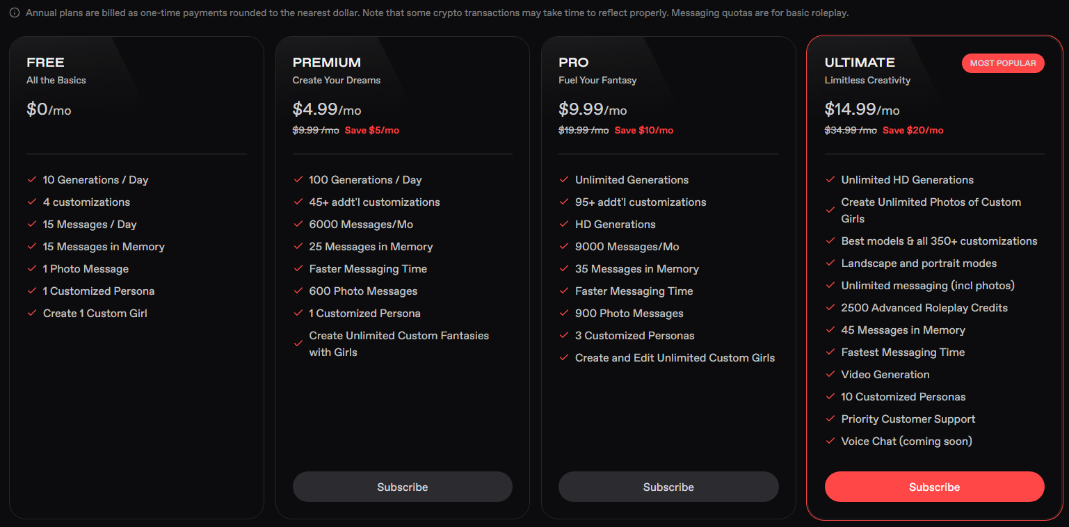 One advantage that TryNectar has over Candy.ai is its ability to create videos. I’ll be honest: they’re not incredible, but you have to start somewhere, right? AI images weren’t even a thing a few years ago, so we’ve really come leaps and bounds since then. I wouldn’t be surprised if by mid-2025, we had this technology solved, and you can have any AI girlfriend doing anything you want. As for premium features, here are the current options: