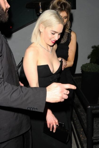 When you go to the Golden Globes, you wanna make sure that your golden funbags are almost slipping out of your top. Back in 2018, Emilia decided to sport this elegant dress with no bra – a risky decision, but one that left everyone seeing her quite happy indeed. If only the cameraman in the first image was positioned slightly better – we’d have gotten ourselves a bona fide Emilia Clarke nip slip!