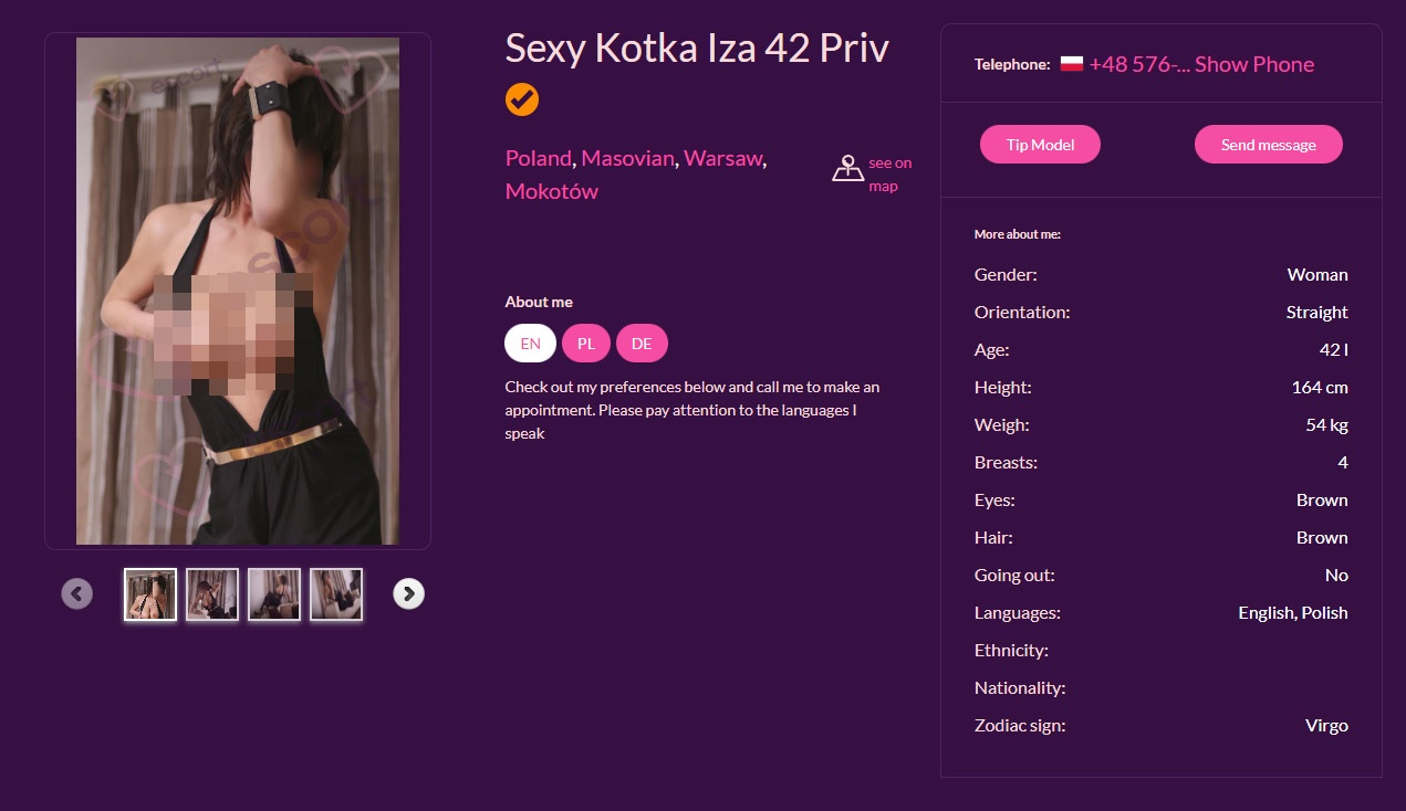 When you go ahead and click on a profile of an escort that you might be interested in, you’ll then be shown a profile that includes a number of important pieces of information. You’ll find their age, height, weight, eyes, hair color and so on. There’s also a price list here, which is useful to know if you’re someone that’s on a tight budget or wants a world-class piece of ass that’s going to cost you a pretty penny. The site also has the contact phone number, as well as a message platform, so you can get in touch with the Polish escort of your dreams.