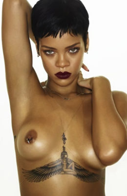 She’s skilled as fuck and knows how to put a smile on the face of any guy out there that wants to have a great time. Additionally, we’ve seen that her body is pretty damn delicious too – can’t fault a black babe with a tattoo for stripping down naked, right? Just imagine how great it would be for you yourself to get to witness Rihanna nude at the beach or something – in all of her perfection and glory. Mr. Porn Geek really knows the ins and outs of this game and thinks that this image is pure bliss when it runs through your mind.