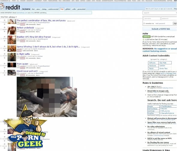 The ratio of subscribers to content is a little on the low side, but Mr. Porn Geek thinks that NSFW_GIF is a great place to find porn regardless. The mixture of softcore and hardcore really makes it fun, plus they run a no-bullshit platform that basically removes anything even remotely similar to an advertisement. Definitely check out Reddit’s NSFW_GIF community when you can!